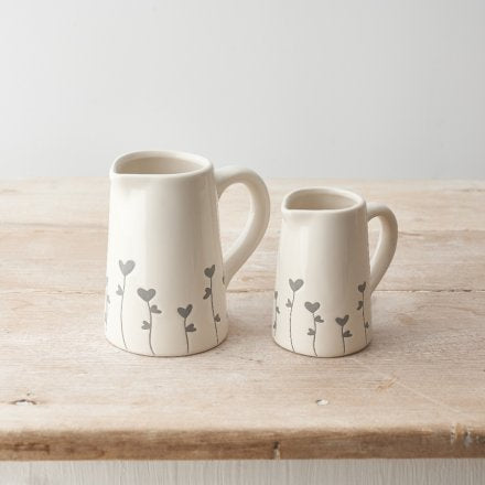 GREY HEART FLORAL JUG - 9cm